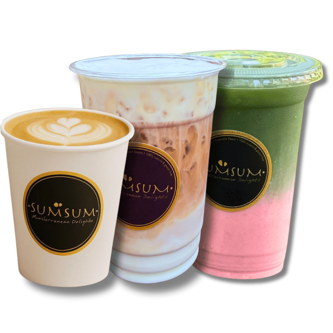 The Sumsum Café lineup brings handcrafted espresso drinks, refreshing iced creations, and vibrant matcha blends — all made with premium ingredients and Mediterranean warmth; your daily dose of bold flavor and smooth comfort.